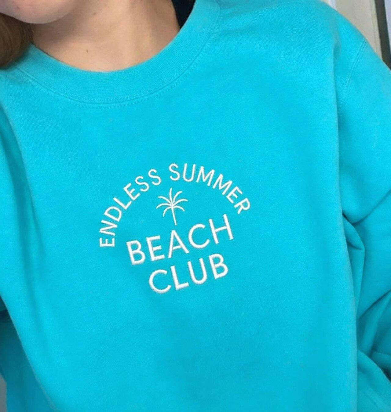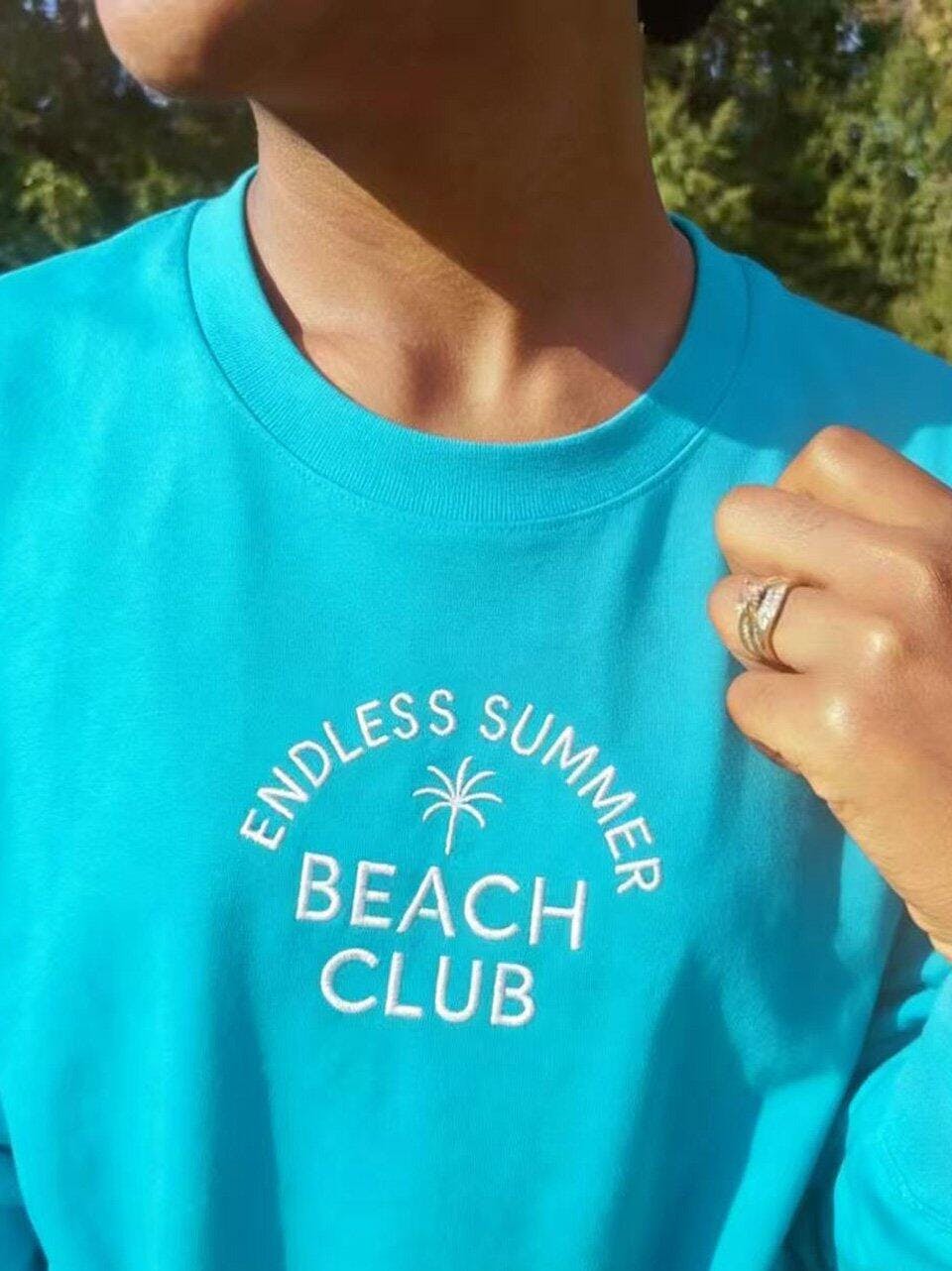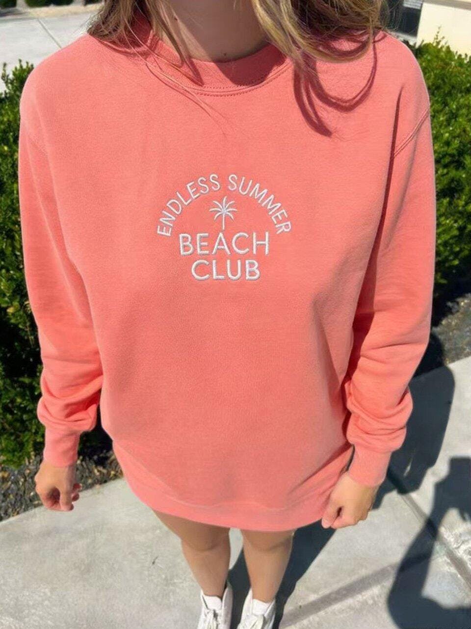 "Endless Summer Beach Club" Letter Embroidered Crewneck Sweatshirt