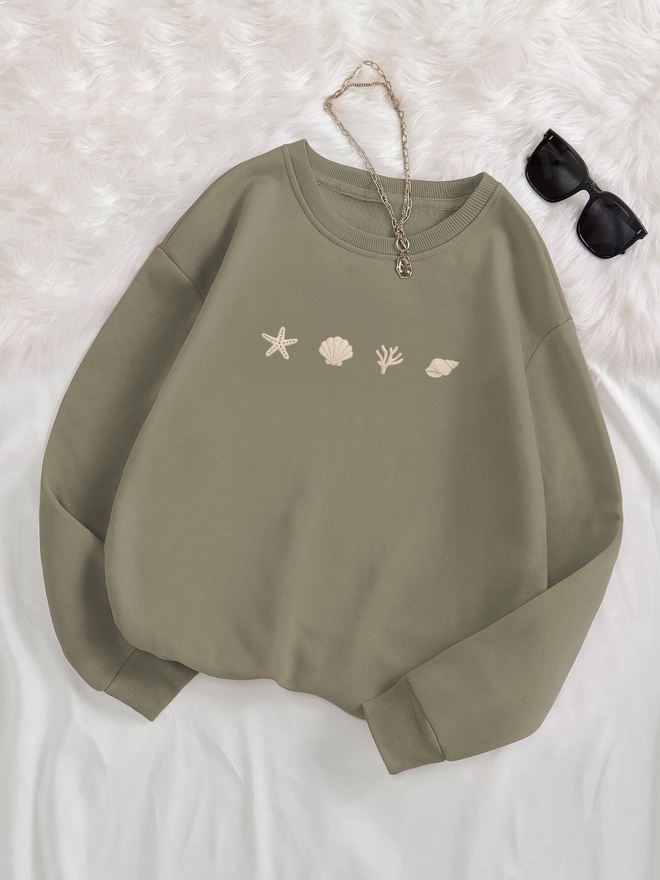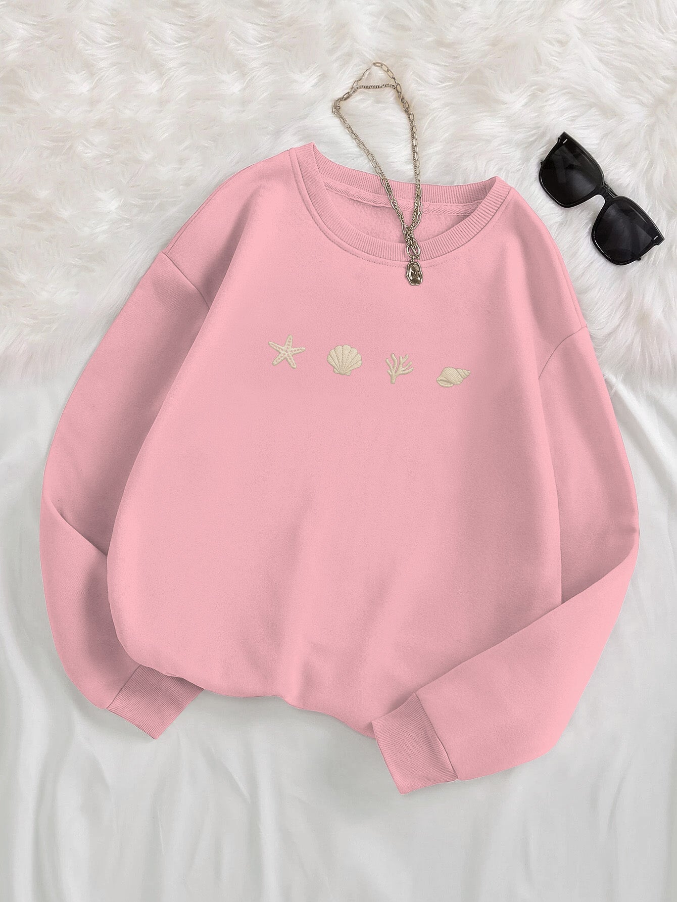 Seashell And Coral Embroidered Crewneck Sweatshirt