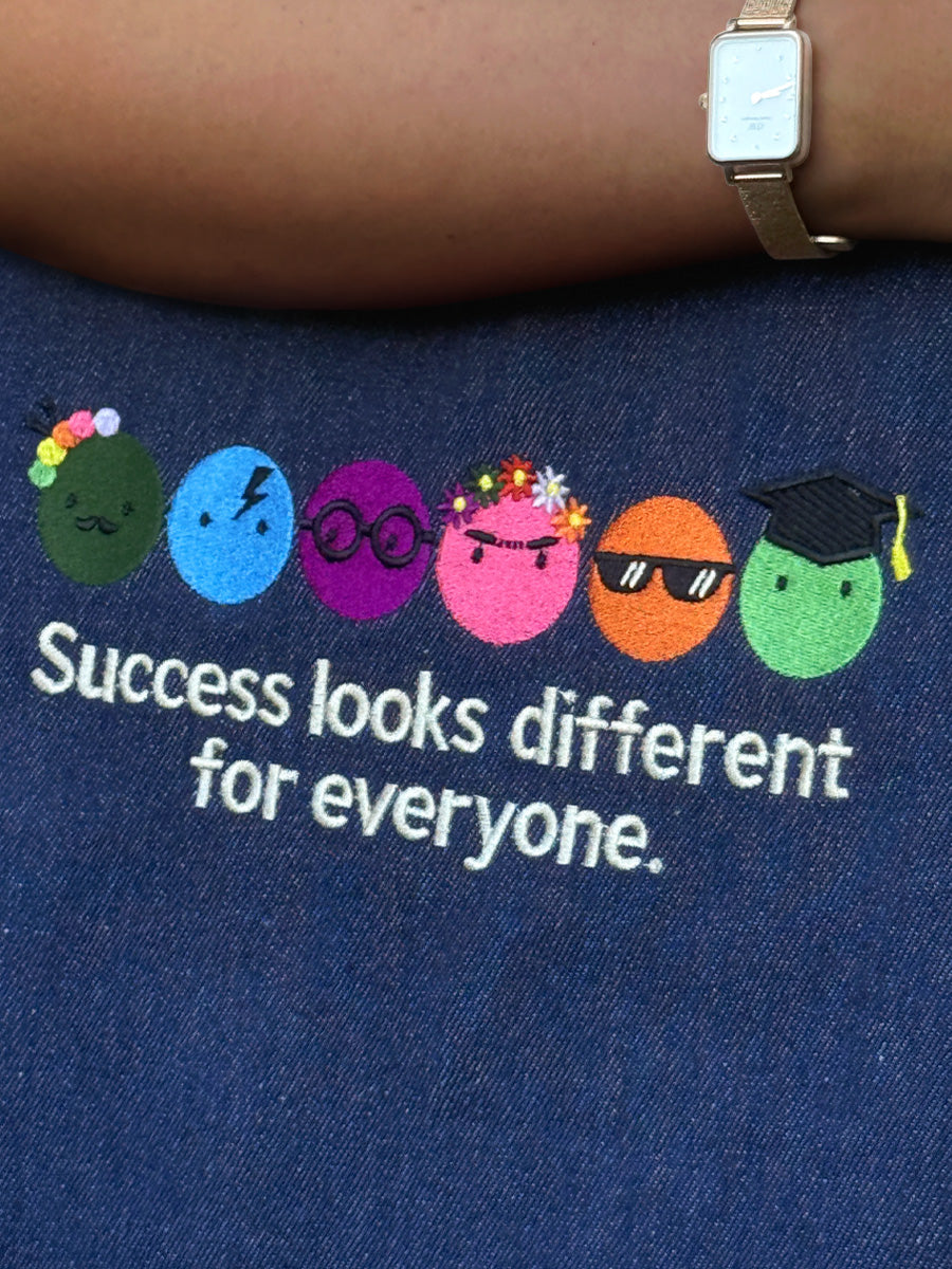 "Success Looks Different For Everyone" Healing Art Embroidered Denim Bag